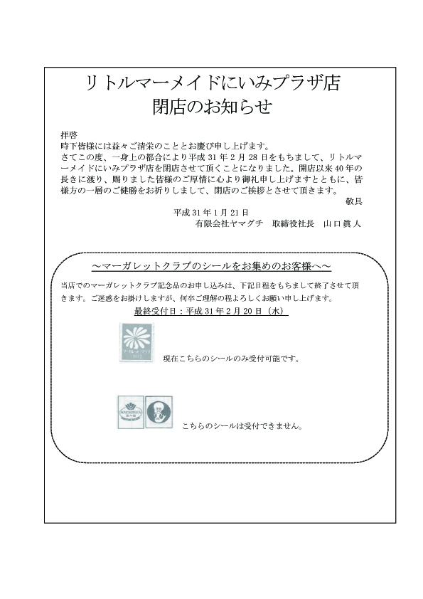新型コロナウイルス感染拡大の影響で例年の行事の多くが中止となりました。 それを受けてプラザ恒例のイベントなども中止せざるを得ない状況です。 お客様に喜んでいただけるようなプログラムを思案中ですので、楽しみに お待ちくださいませ。 プラザカード会員の皆様へ 磁気不良を起こさないようご注意ください。 4月1日からプラザカードの再発行時には100円いただくようになりました。 スマホや電気製品のそばに置いたり、財布・カバン等のマグネットホックや 磁石に近づけたりしないでください。 また、他の磁気カード同士をくっつけて保管するのも磁気不良の原因です。 よろしくお願いします。 プラザ全店でPayPayが使えます!カーブスを除く全店でPayPayが使えます! お買い物、お食事、クリーニングにも!! 新規テナント募集中!! 詳しくは、にいみプラザ事務局まで ☎72-1117